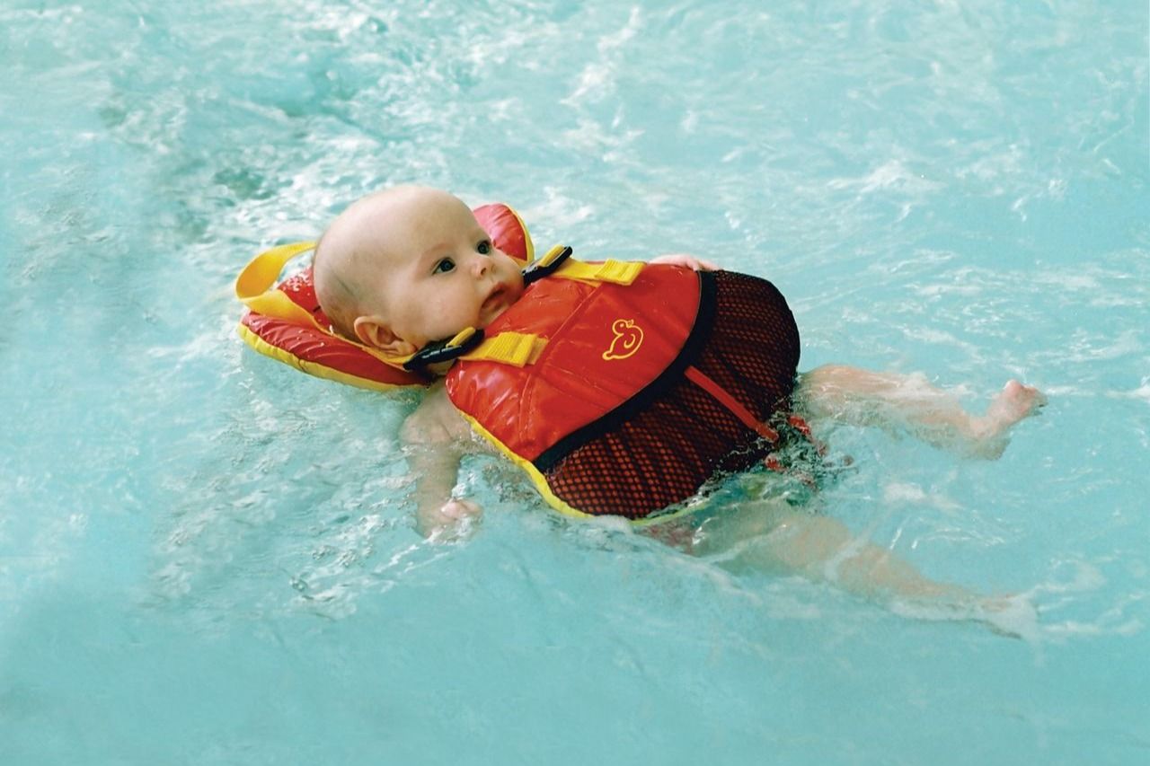 Large, supportive collar designed to float and protect a baby’s head, which is the heaviest part of their body
